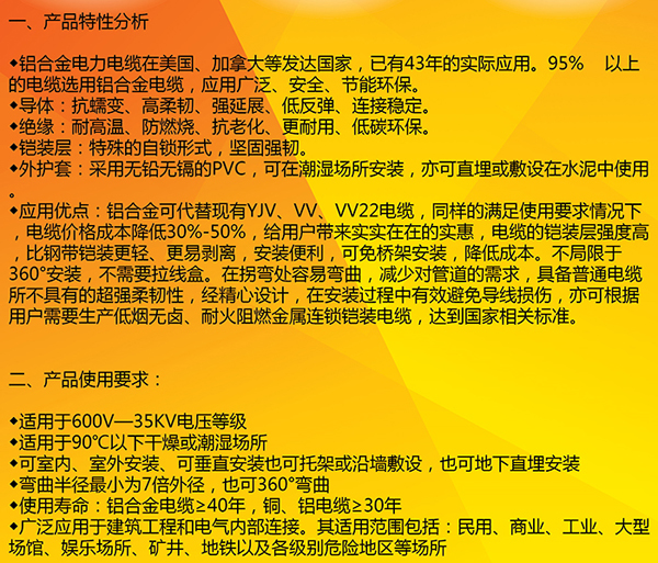 鋁合金電纜:鋁合金電纜ZR-YJLHV 瀏覽:3634